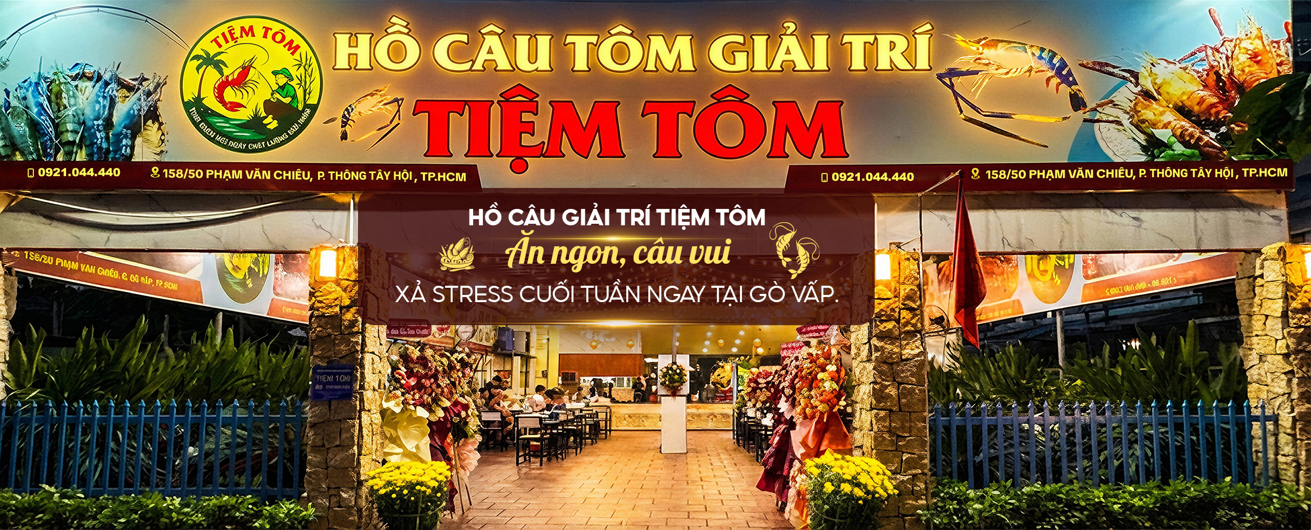 Hồ Câu Giải Trí Tiệm Tôm là mô hình quán ăn kết hợp hồ câu giải trí tọa lạc tại 158/50 Phạm Văn Chiêu, Gò Vấp, Hồ Chí Minh. Không chỉ đơn thuần là một quán ăn, Tiệm Tôm mang đến trải nghiệm “vừa câu – vừa ăn – vừa thư giãn” trong không gian sân vườn rộng rãi, thoáng mát.