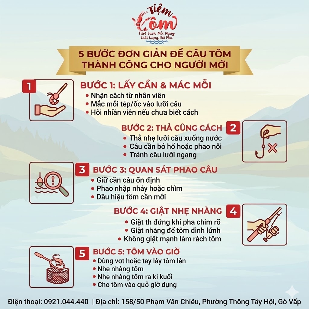 Nếu bạn chưa từng trải nghiệm câu tôm trước đây, đừng lo lắng.